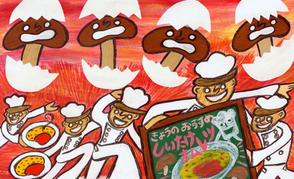 たまごのなかみは しいたけ でした。