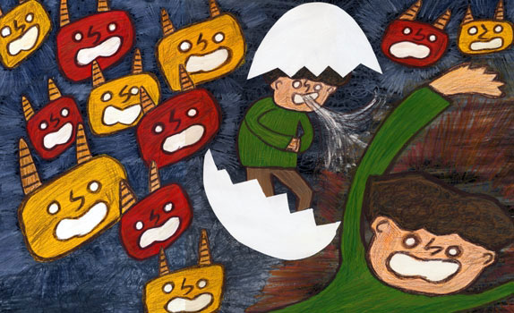 たまごのなかみは しゃっくり でした。