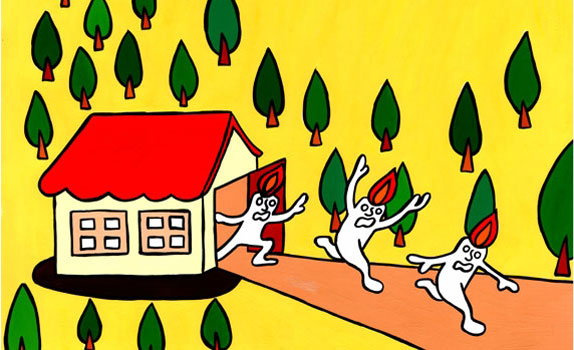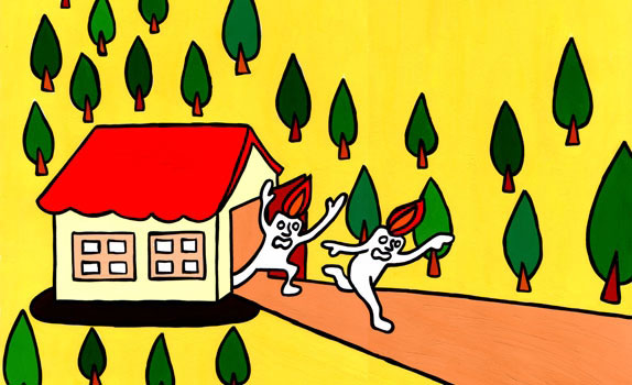 森の小さな家から ろうそくさんが1匹…